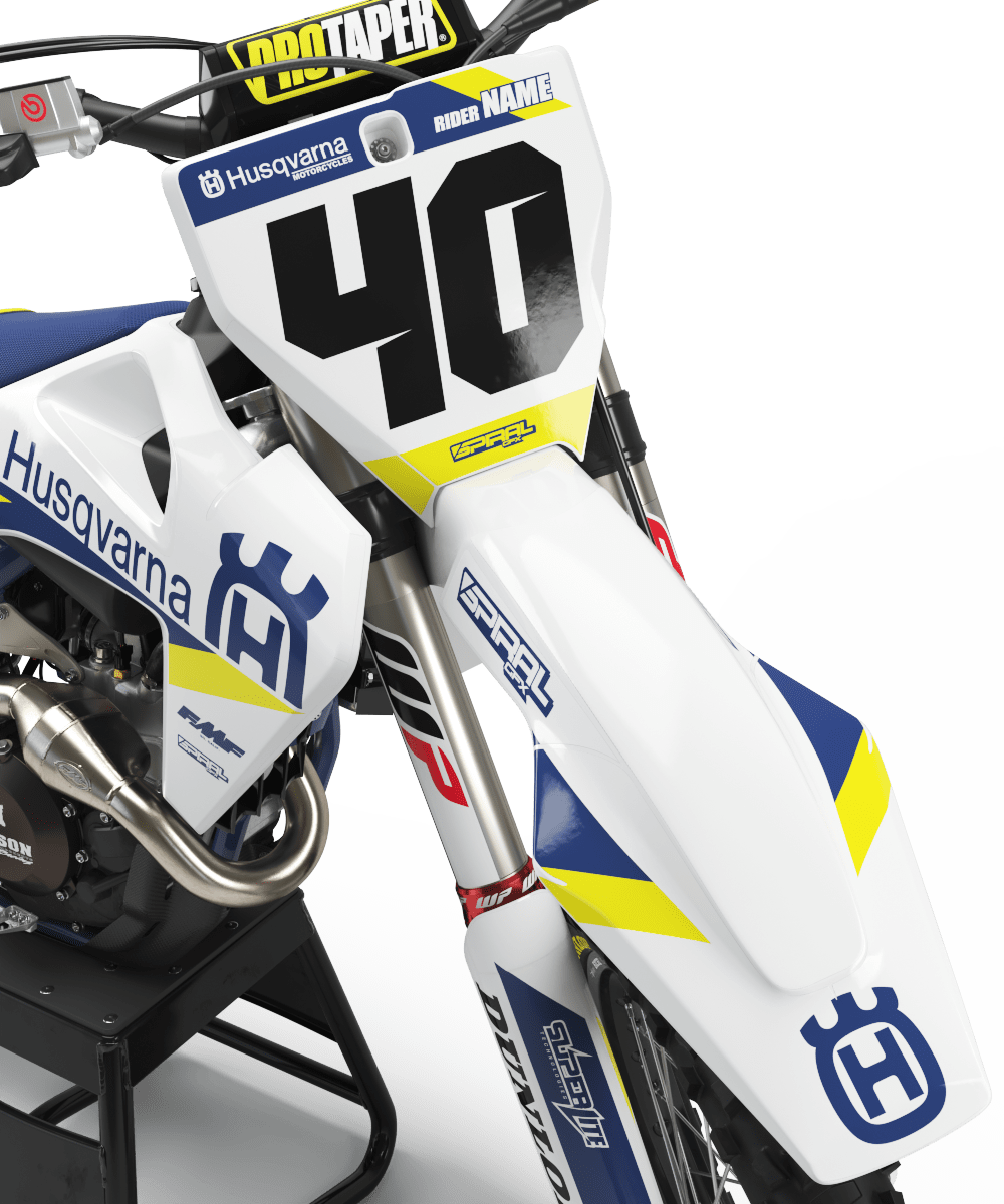 Husqvarna // Punch 3.0 Motocross Graphics Kit made by SpiralGFX, Licensed by KTM, Husqvarna & Gas Gas and printed on the very best materials with high quality print equipment.