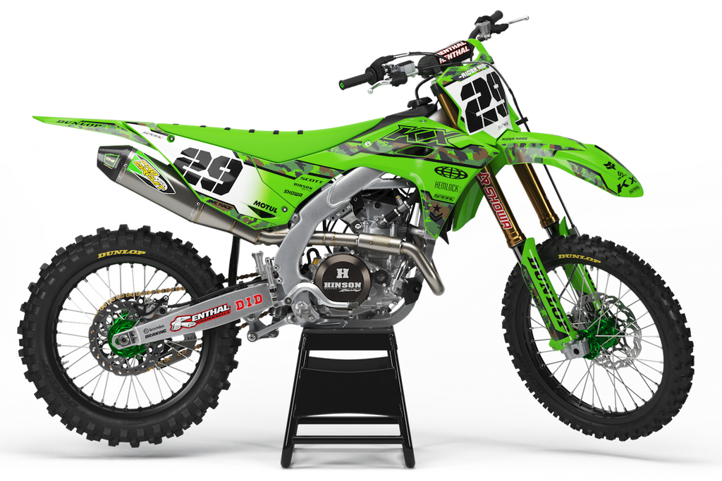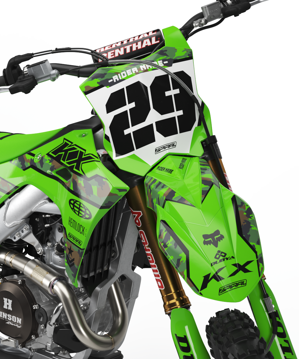 Kawasaki // Classified Green Motocross Graphics Kit made by SpiralGFX, Licensed by KTM, Husqvarna & Gas Gas and printed on the very best materials with high quality print equipment.