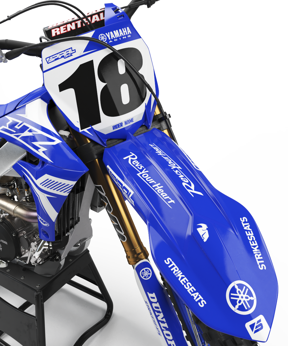Yamaha // Strike Blue (All Bikes) Motocross Graphics Kit made by SpiralGFX, Licensed by KTM, Husqvarna & Gas Gas and printed on the very best materials with high quality print equipment.