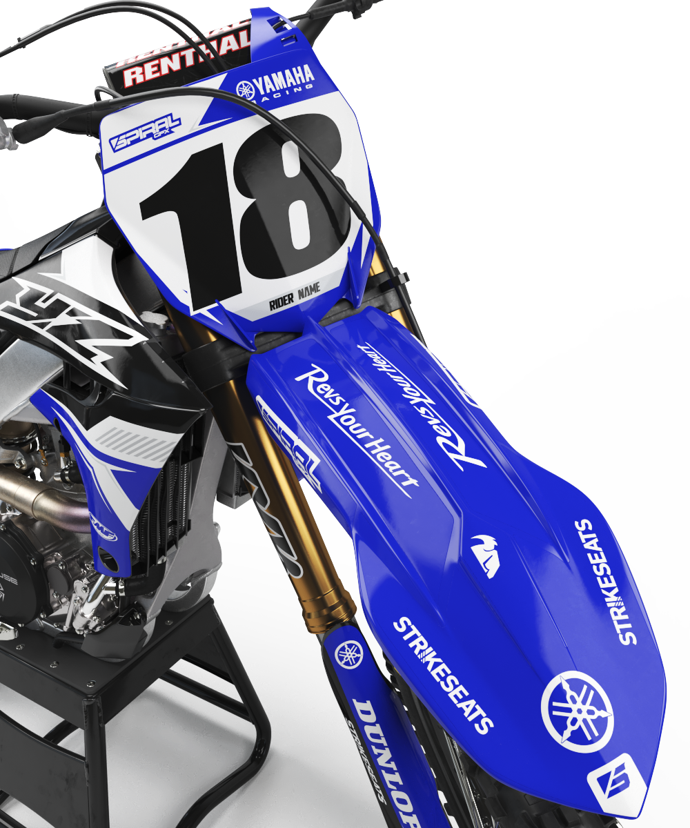 Yamaha // Strike Blue Black (All Bikes) Motocross Graphics Kit made by SpiralGFX, Licensed by KTM, Husqvarna & Gas Gas and printed on the very best materials with high quality print equipment.