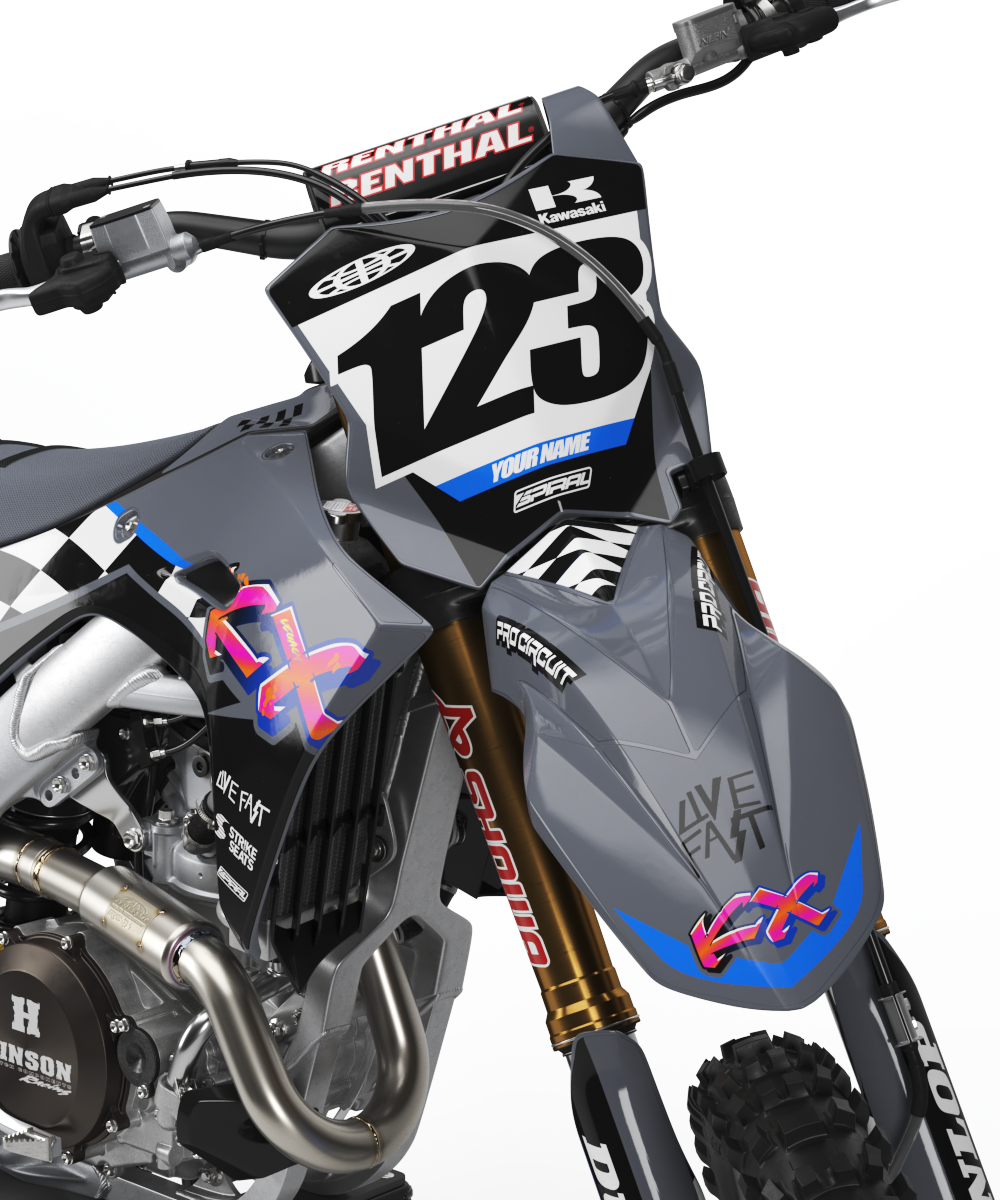 Kawasaki // Legacy Grey Motocross Graphics Kit made by SpiralGFX, Licensed by KTM, Husqvarna & Gas Gas and printed on the very best materials with high quality print equipment.