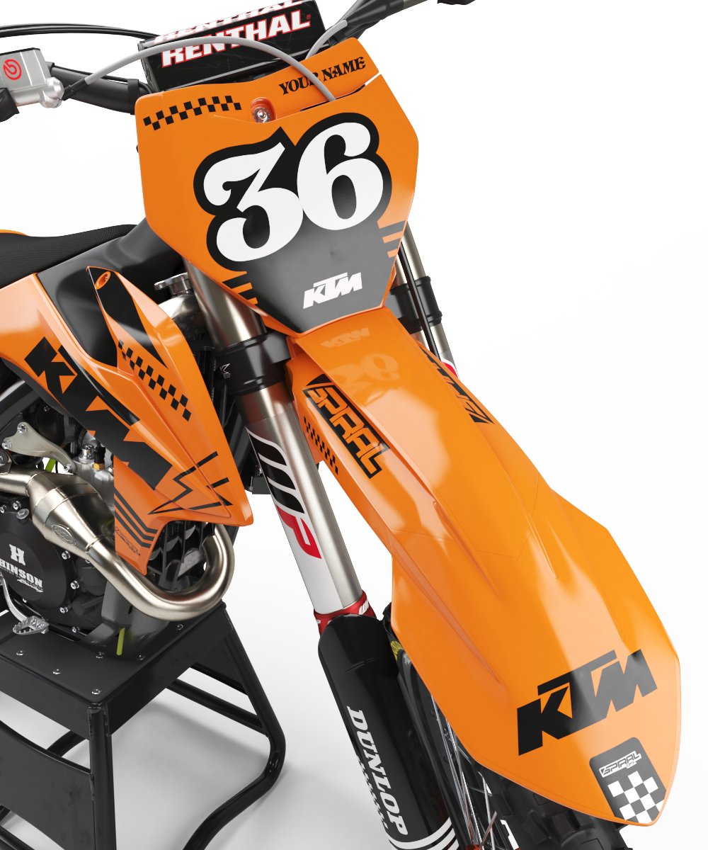 KTM // Retro Orange Motocross Graphics Kit made by SpiralGFX, Licensed by KTM, Husqvarna & Gas Gas and printed on the very best materials with high quality print equipment.