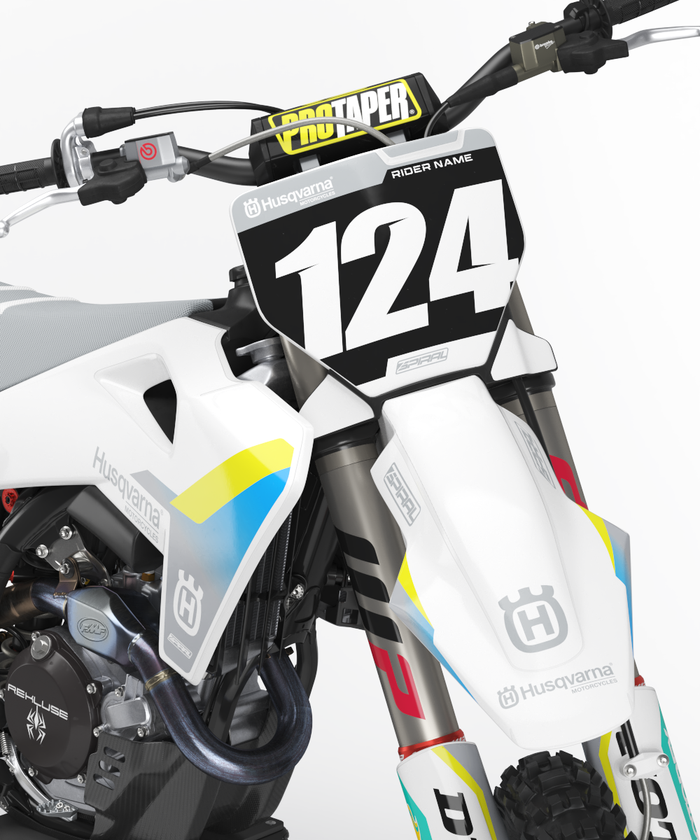 Husqvarna // OEM 25 V2 Motocross Graphics Kit made by SpiralGFX, Licensed by KTM, Husqvarna & Gas Gas and printed on the very best materials with high quality print equipment.