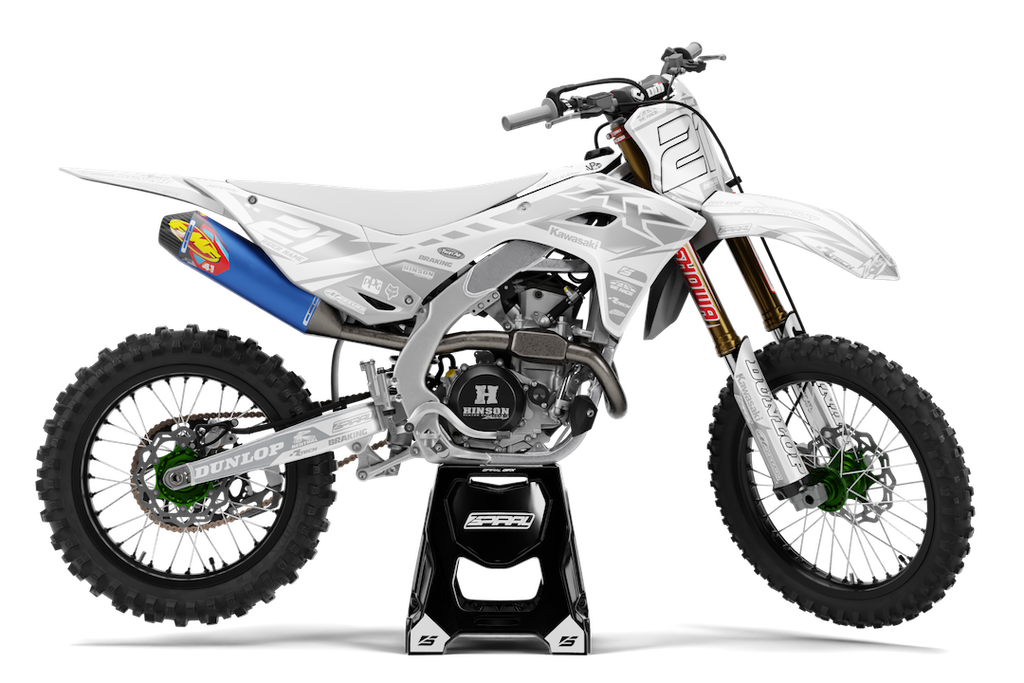Kawasaki // Beast White Motocross Graphics Kit made by SpiralGFX, Licensed by KTM, Husqvarna & Gas Gas and printed on the very best materials with high quality print equipment.