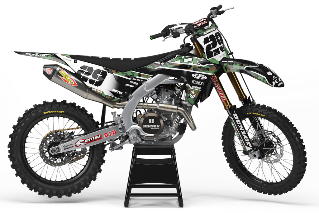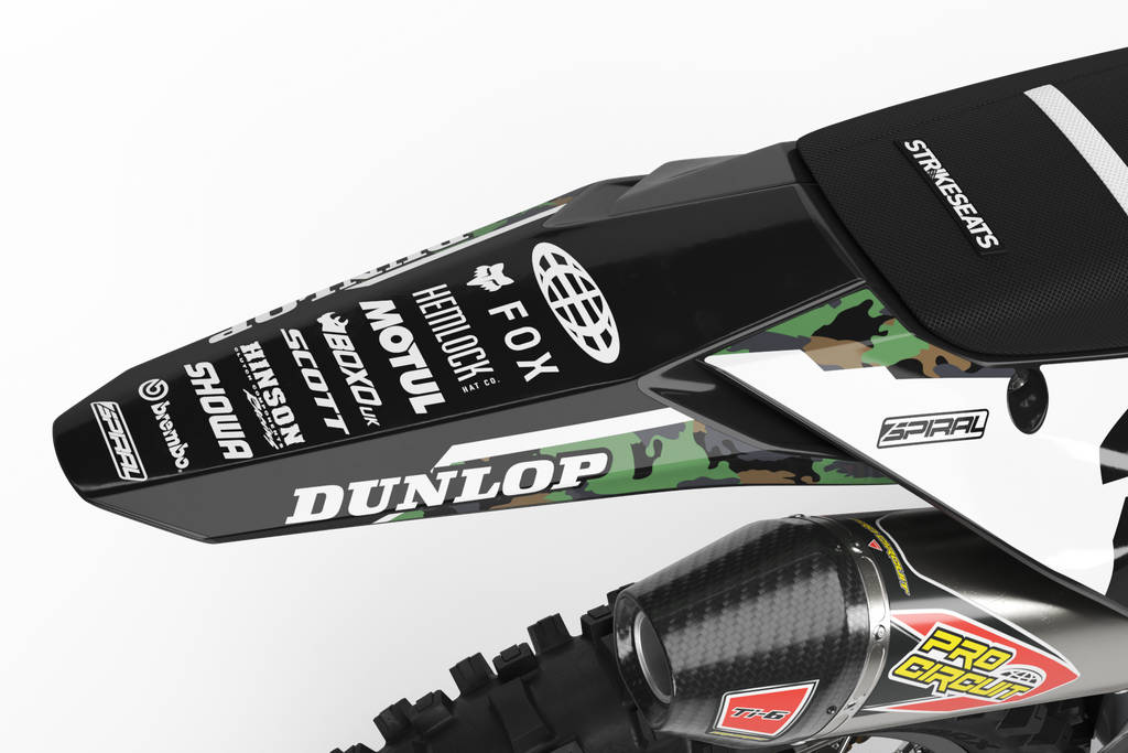 Kawasaki // Classified Black Motocross Graphics Kit made by SpiralGFX, Licensed by KTM, Husqvarna & Gas Gas and printed on the very best materials with high quality print equipment.