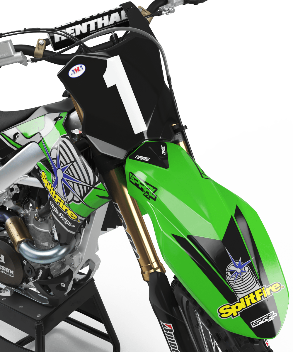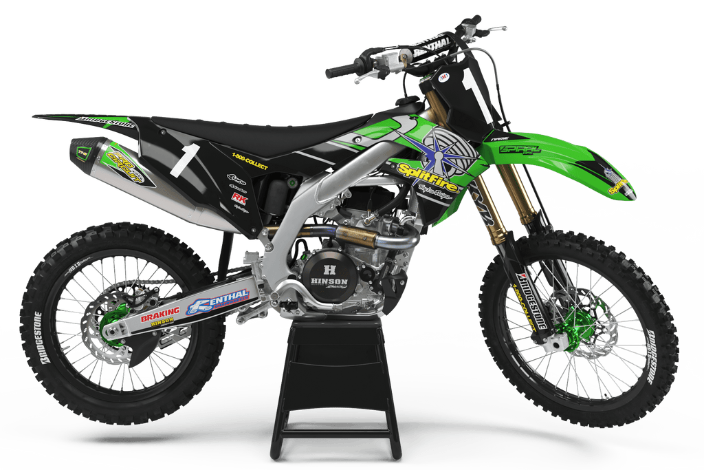 Kawasaki // Splitfire Motocross Graphics Kit made by SpiralGFX, Licensed by KTM, Husqvarna & Gas Gas and printed on the very best materials with high quality print equipment.