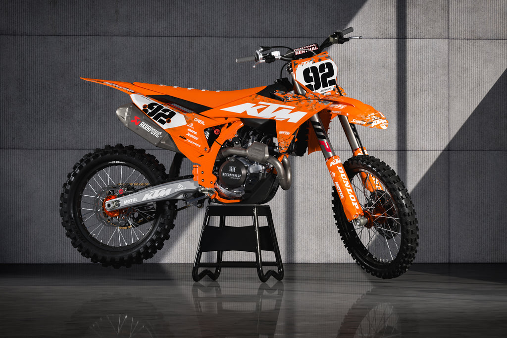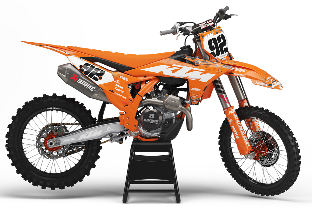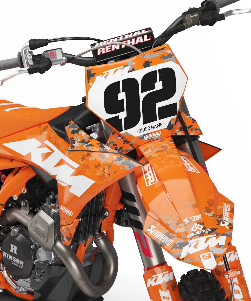 KTM // Digital Orange Motocross Graphics Kit made by SpiralGFX, Licensed by KTM, Husqvarna & Gas Gas and printed on the very best materials with high quality print equipment.