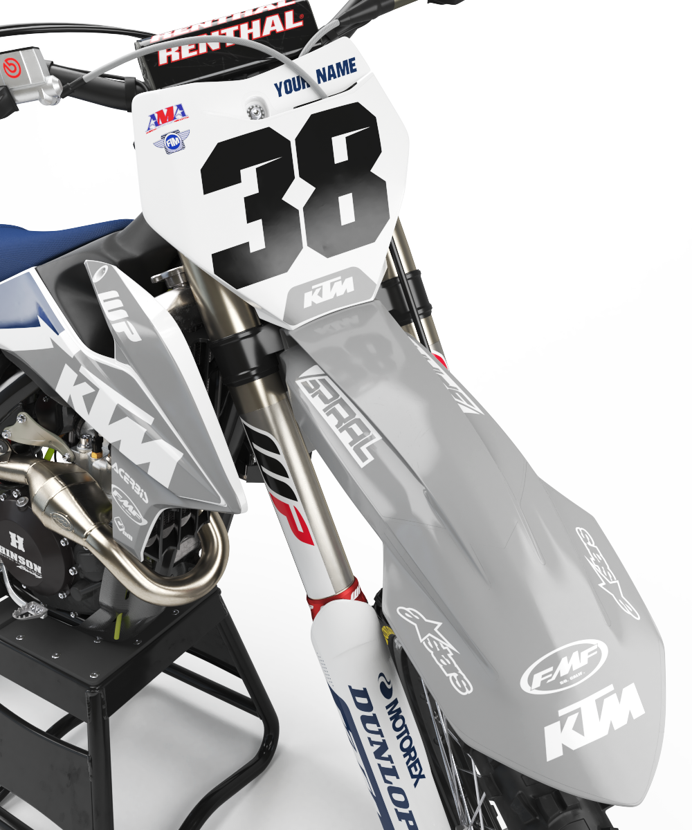 KTM // EDGE GREY Motocross Enduro Graphics Kit made by SpiralGFX, Licensed by KTM, Husqvarna & Gas Gas and printed on the very best materials with high quality print equipment.