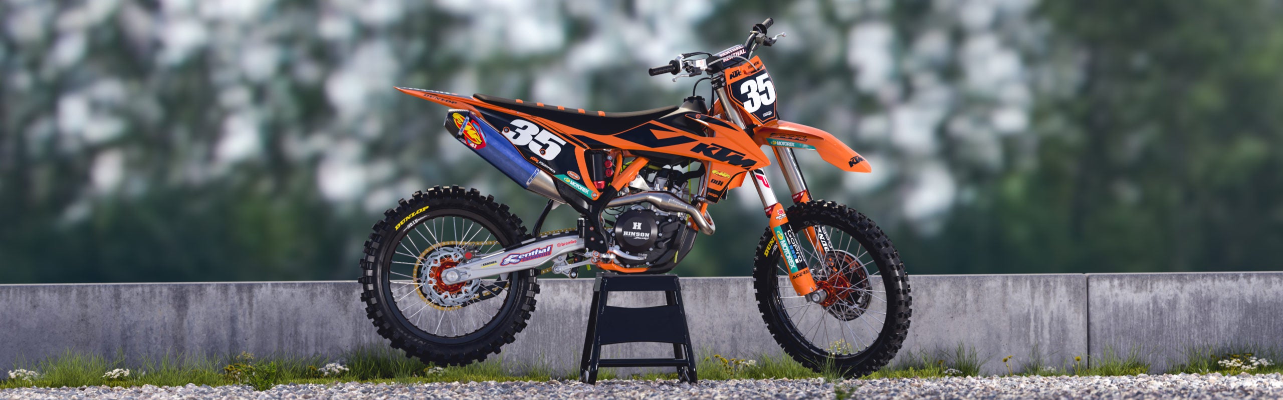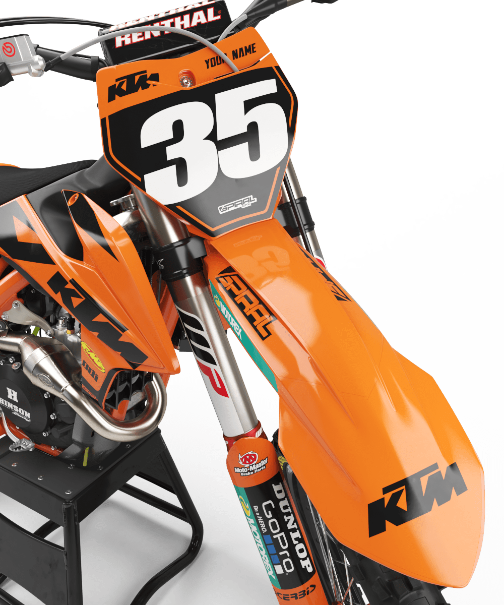KTM // Orange Brigade Motocross Graphics Kit made by SpiralGFX, Licensed by KTM, Husqvarna & Gas Gas and printed on the very best materials with high quality print equipment.