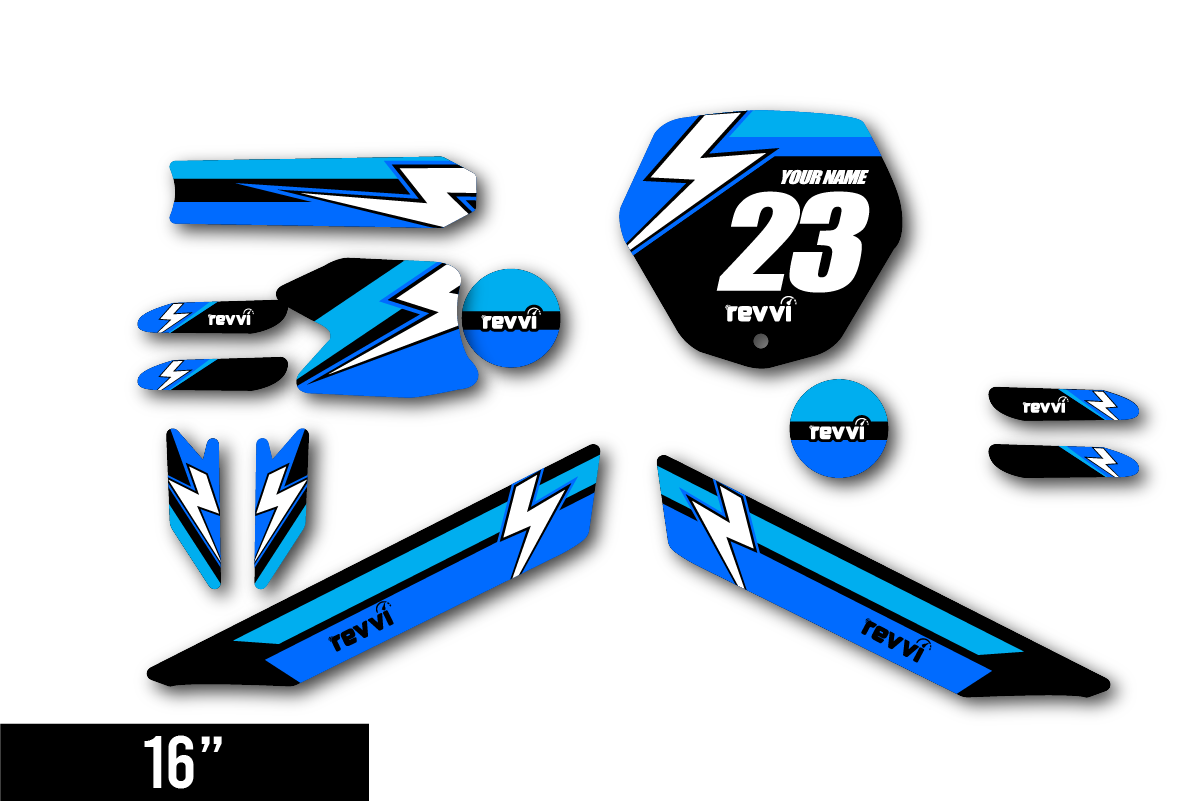 Revvi 12" / 16" Spark 1.0 Motocross Graphics Kit made by SpiralGFX, Licensed by KTM, Husqvarna & Gas Gas and printed on the very best materials with high quality print equipment.