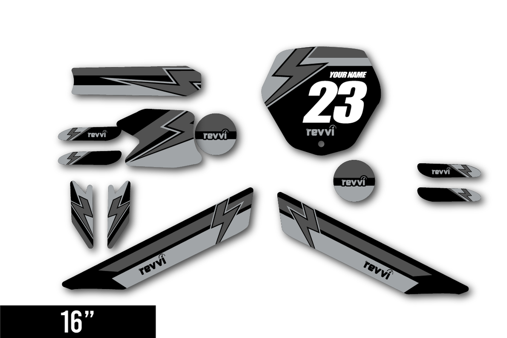 Revvi 12" / 16" Spark 1.0 Motocross Graphics Kit made by SpiralGFX, Licensed by KTM, Husqvarna & Gas Gas and printed on the very best materials with high quality print equipment.