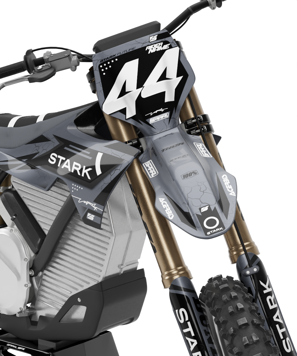 Stark Future // Podium Grey  Motocross Graphics Kit made by SpiralGFX, Licensed by KTM, Husqvarna & Gas Gas and printed on the very best materials with high quality print equipment.