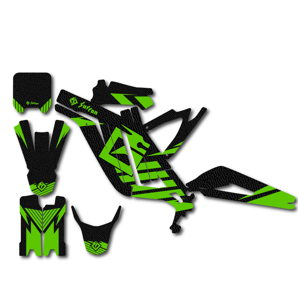 Surron Lightbee Green Graphics Kit made by SpiralGFX, Licensed by KTM, Husqvarna & Gas Gas and printed on the very best materials with high quality print equipment.