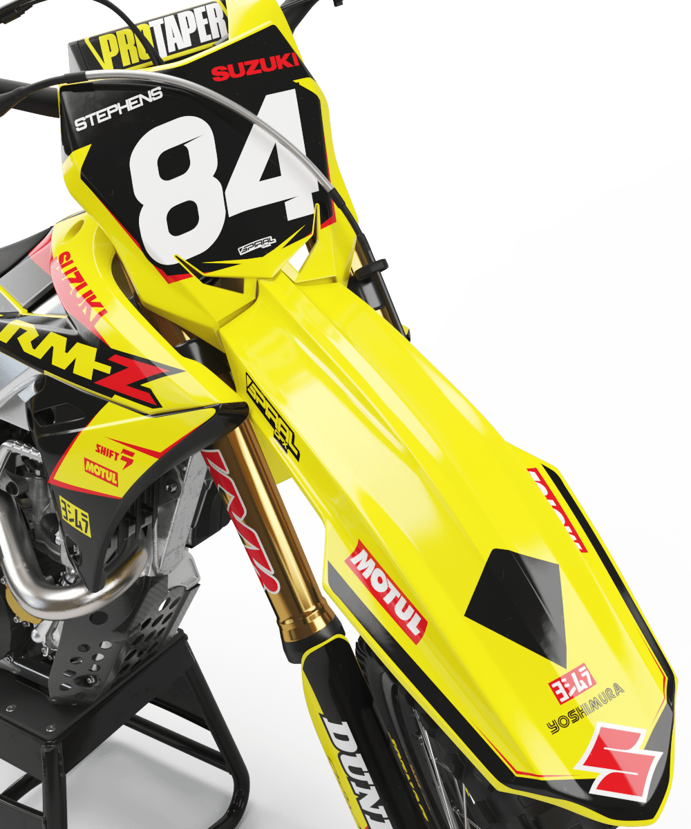 Suzuki // Stadium Motocross Graphics Kit made by SpiralGFX, Licensed by KTM, Husqvarna & Gas Gas and printed on the very best materials with high quality print equipment.
